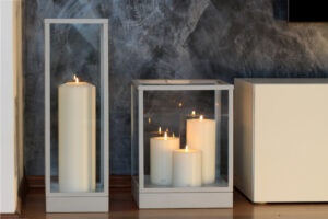 Ob auf dem Tisch oder dem Sideboard – die handgefertigten Windlichter der QUINTA-Serie bringen zurückhaltende Eleganz in jeden Raum. Gefertigt in pulverbeschichtetem Schwarz, Rost, Sahara oder Silber, strahlen sie Wärme und zeitlose Ästhetik aus.