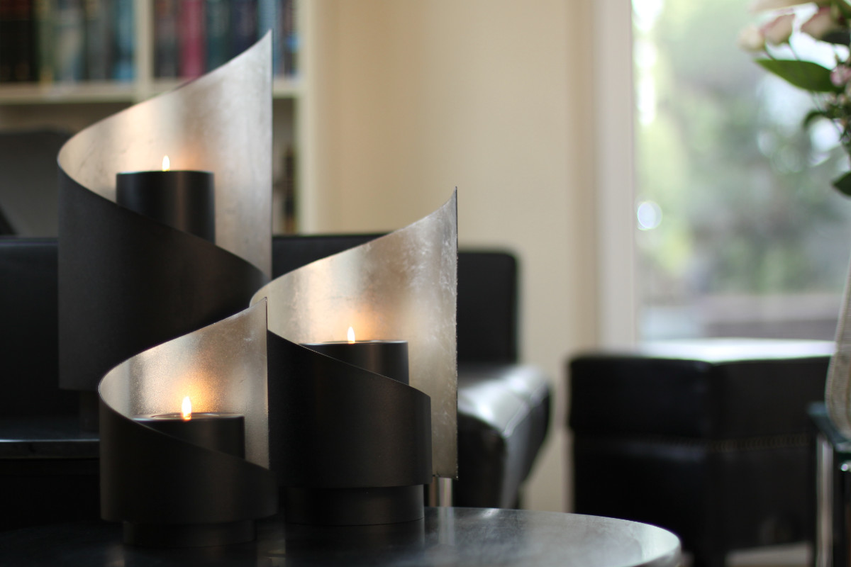 Unser Windlicht SAIL Silber – perfekt für moderne Interieurs mit einer Vorliebe für schwarze Akzente und kühle Eleganz in Silber.